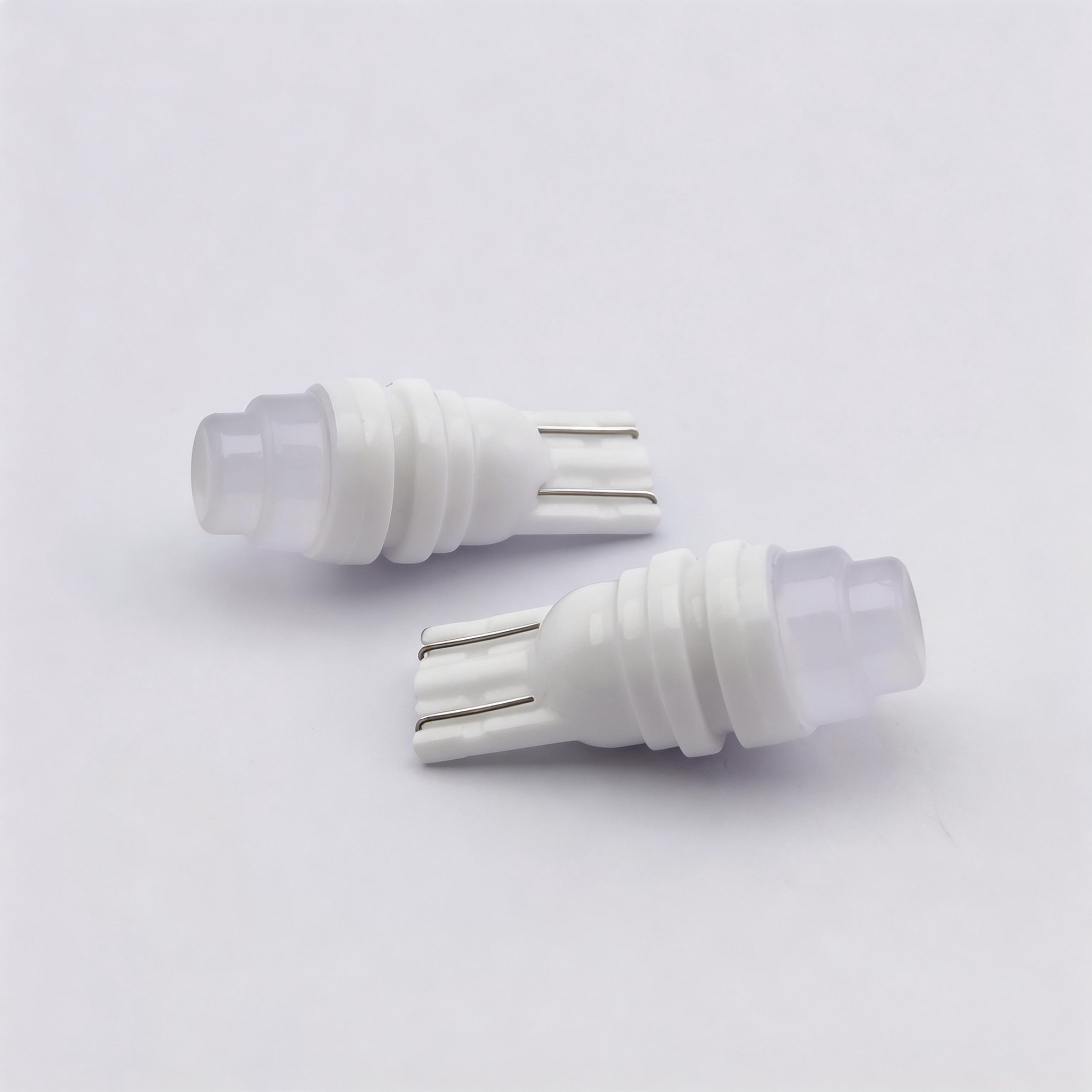 1. The lamp body is made from a new generation of 95% high-density ceramic, fired at 1600°C, and is molded as a single piece with a smooth glazed surface. The lamp body and lens are die-cast at 150°C, achieving a seamless, waterproof connection. This unique structural design provides three times better heat dissipation than T10 car lights with aluminum or plastic bodies.