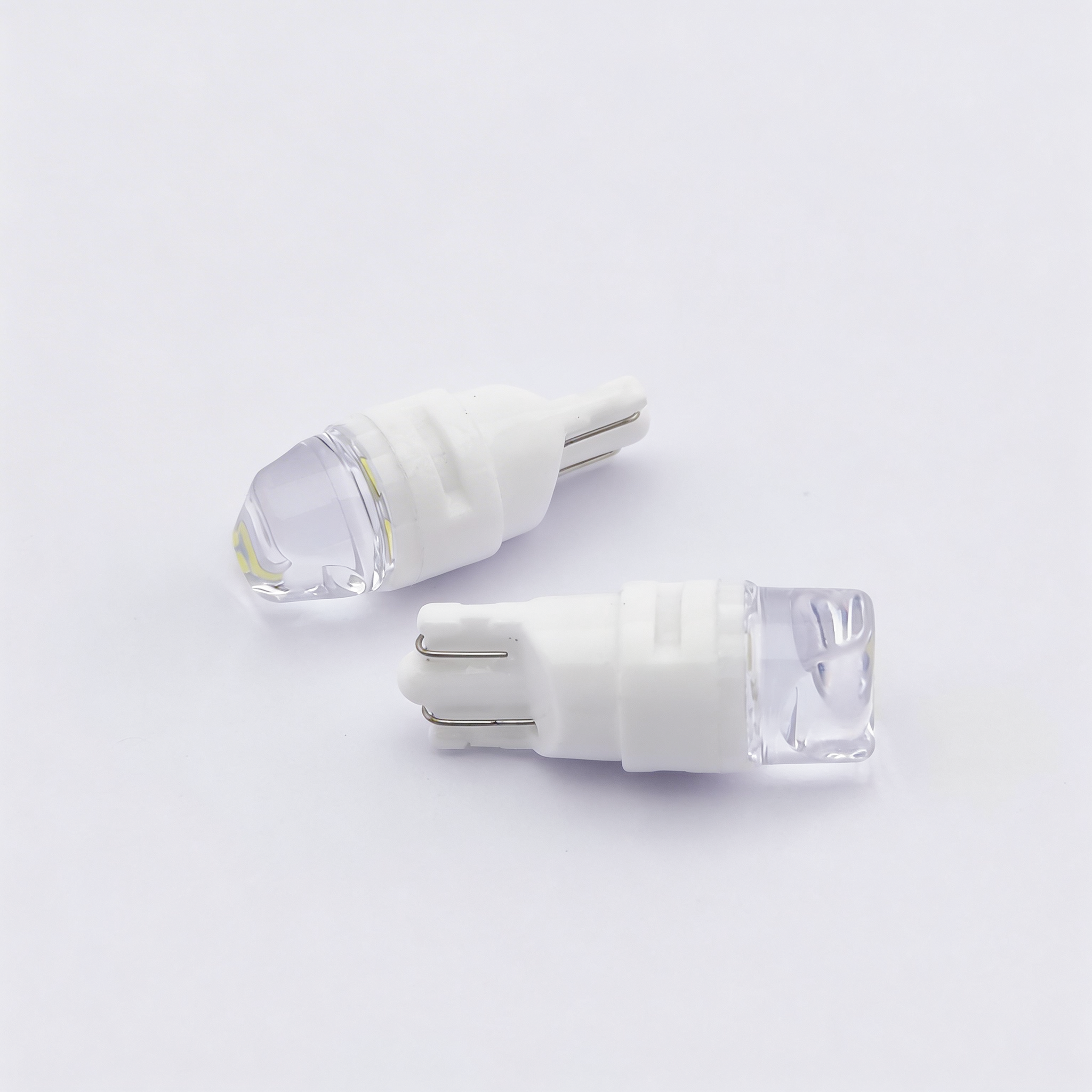T10 Ceramic LED Bulb 360° Full Angle for Side Marker Door Reflector Clearance Light 26MM (Transparent Wedge Combo Beam Lens)