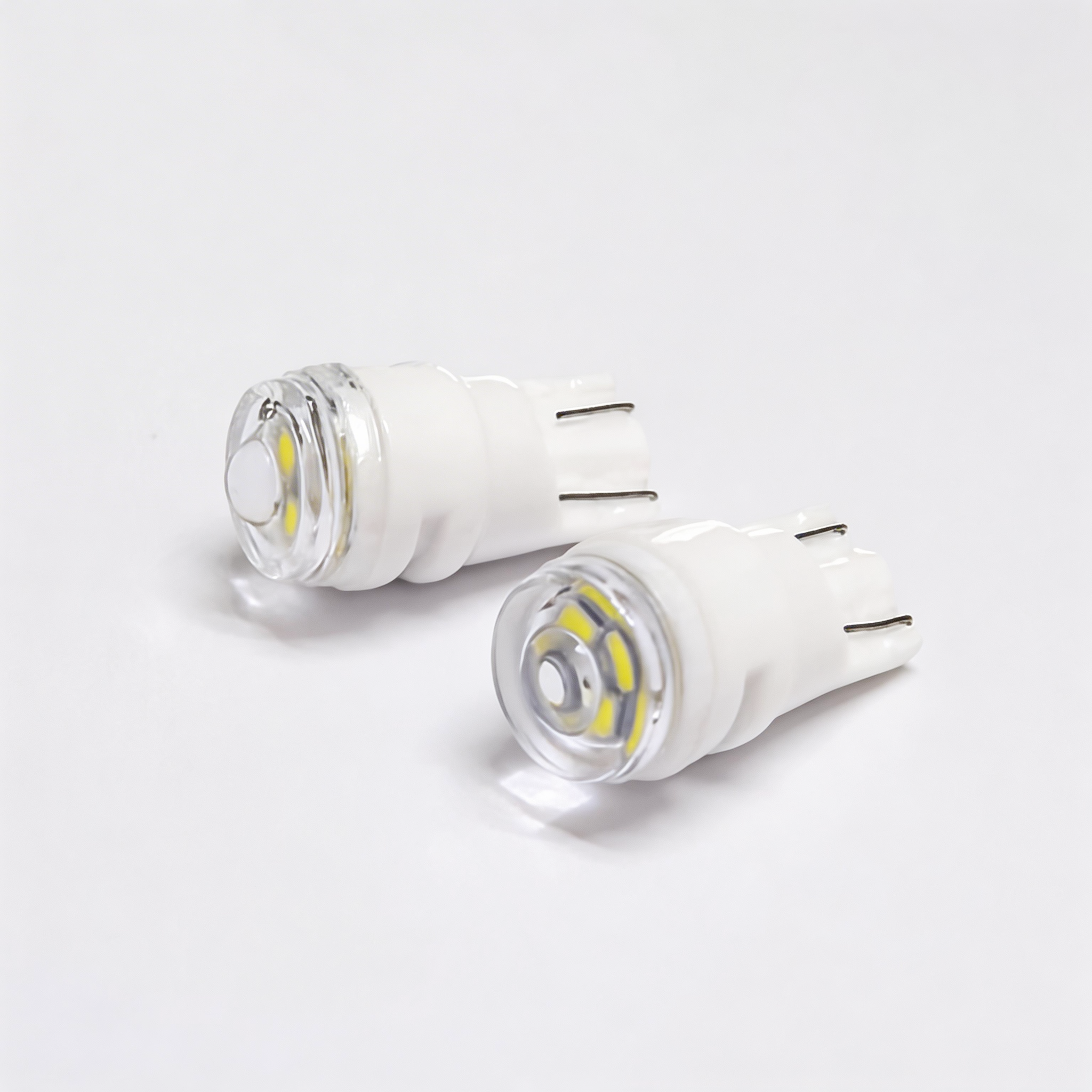 1. The lamp body is made from a new generation of 95% high-density ceramic, fired at 1600°C, and is molded as a single piece with a smooth glazed surface. The lamp body and lens are die-cast at 150°C, achieving a seamless, waterproof connection. This unique structural design provides three times better heat dissipation than T10 car lights with aluminum or plastic bodies.