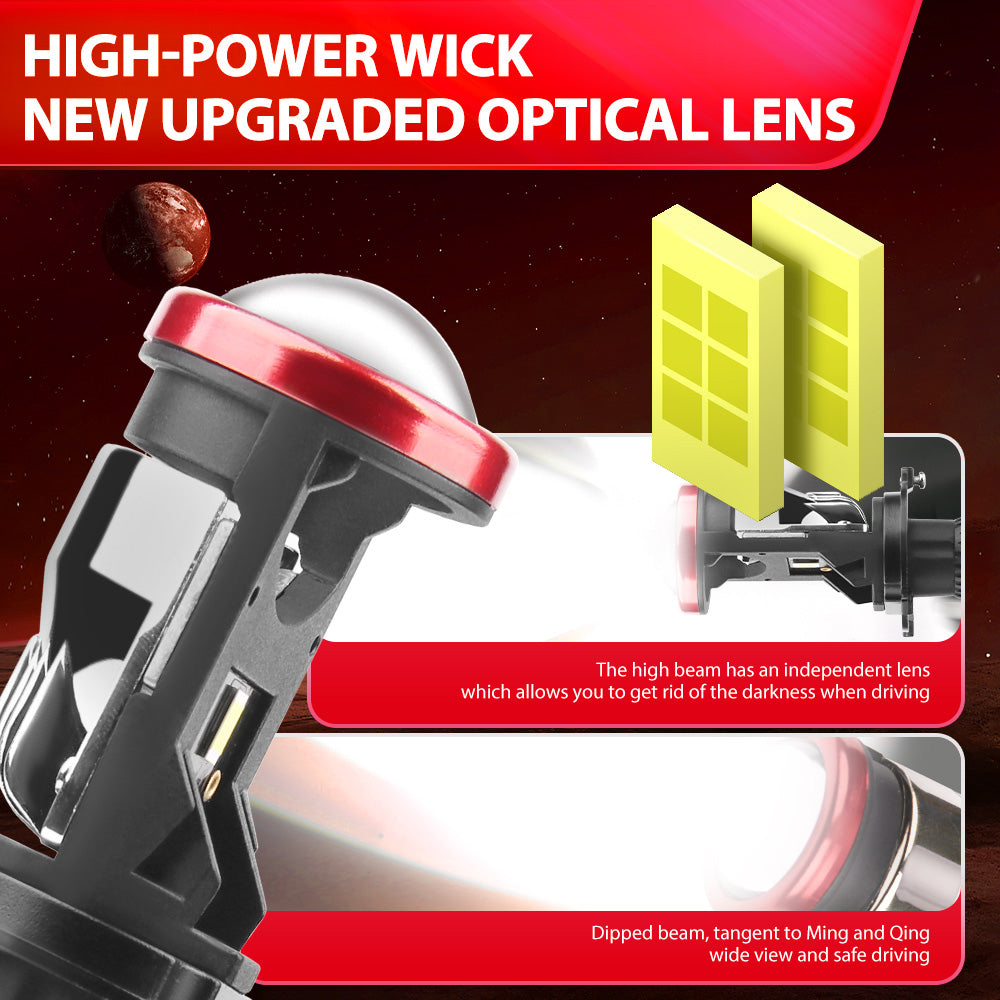 H4 Mini Projector Lens LED Headlight 6000K White 16000LM 130W No Dark Spots Super Bright Driving Light Bulb